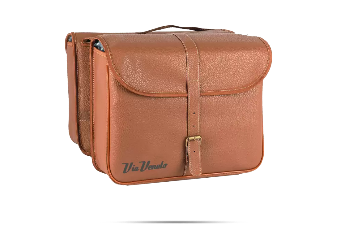 Via Veneto kerékpáros táska (kétoldali), stílusos barna színben, csomagtartóra.